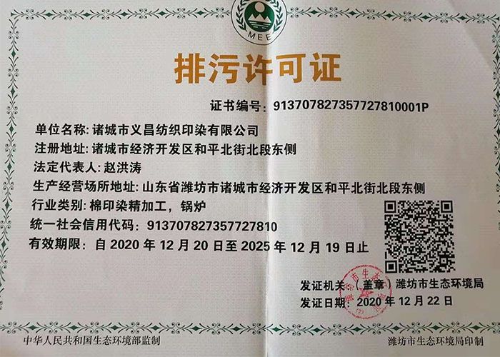 諸城市義昌紡織印染有限公司 通訊地址:山東諸城市開發區和平北街北段東側